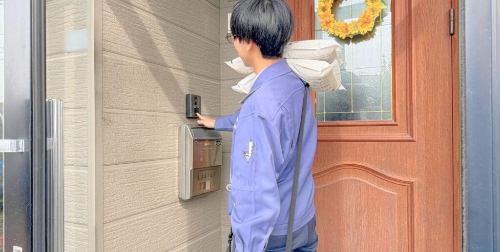 玄関先までお届けいたします。お米の質問や世間話も大歓迎です♬